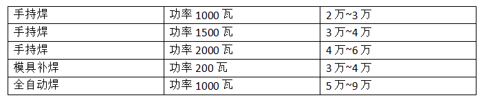 不同品牌和型號的設備價格也會有所不同,例如一臺功率為1000W的光纖激光焊接機價格在2萬到4萬左右,而功率更大的2000W-4000W以上設備價格就會超過6萬,詳情看下表《塘廈焊機價格表》: